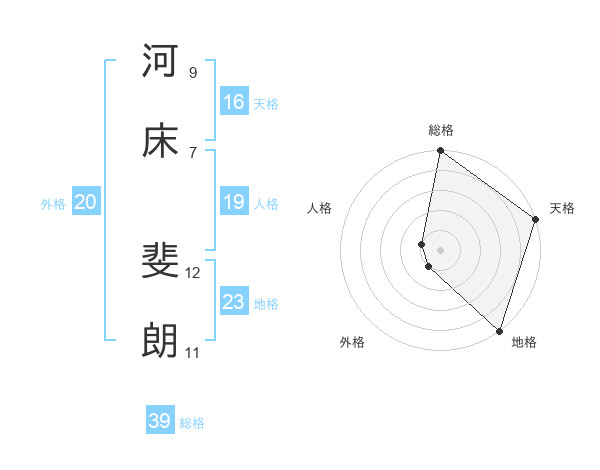 河床 斐朗さんを姓名の画数から五運を鑑定