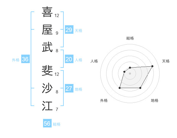 喜屋武 斐沙江さんの天格は29画の4点!
