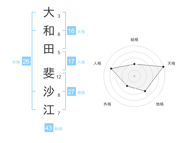 大和田 斐沙江さんを姓名の画数から五運を鑑定