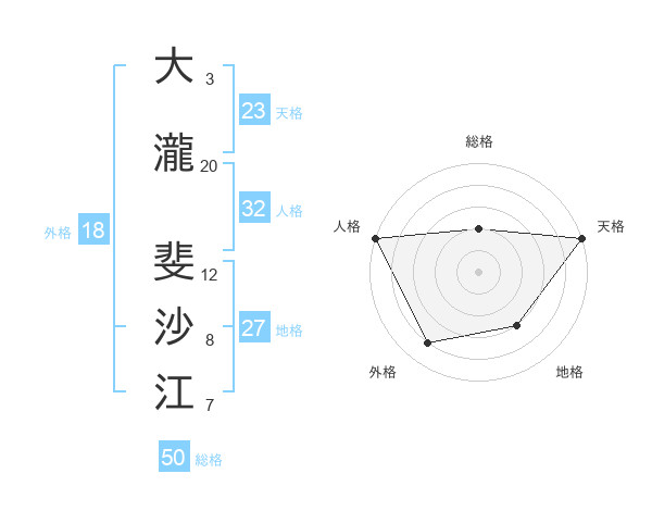 大瀧 斐沙江さんの天格は23画の5点!