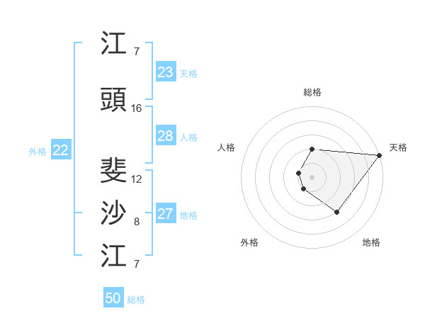 江頭 斐沙江さんの総格は50画の2点!