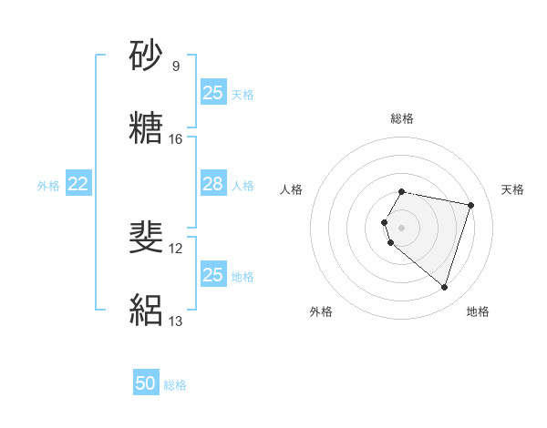 砂糖 斐絽さんを姓名の画数から五運を鑑定