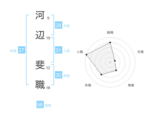 河辺 斐職さんの総格は58画の4点!