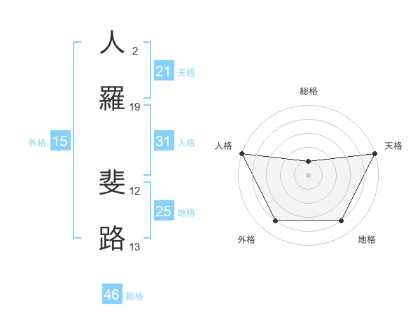 人羅 斐路さんを姓名の画数から五運を鑑定