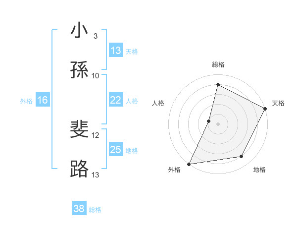小孫 斐路さんを姓名の画数から五運を鑑定