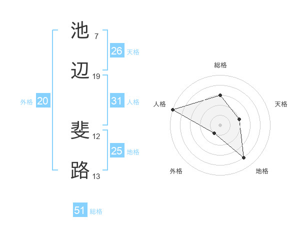 池辺 斐路さんを姓名の画数から五運を鑑定