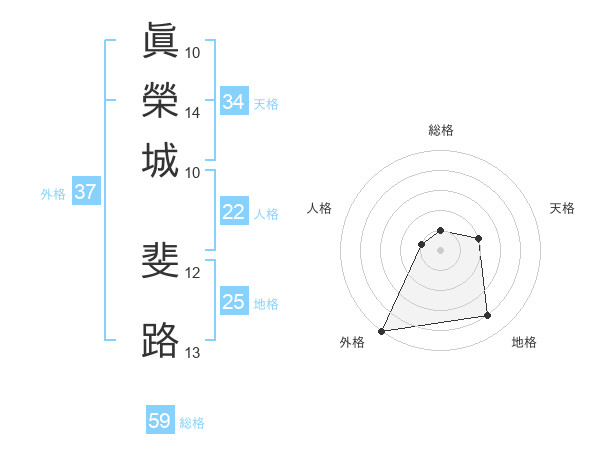 眞榮城 斐路さんの外格は37画の5点!