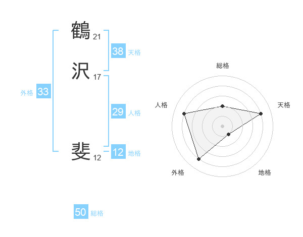 鶴沢 斐さんの総格は50画の2点!