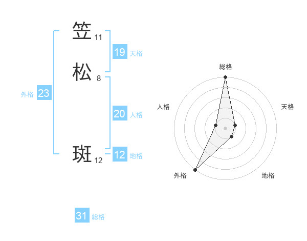 笠松 斑さんの総格は31画の5点!