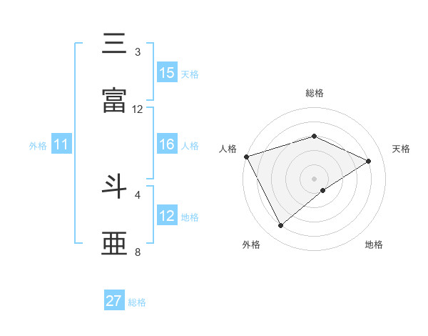 三富 斗亜さんを姓名の画数から五運を鑑定