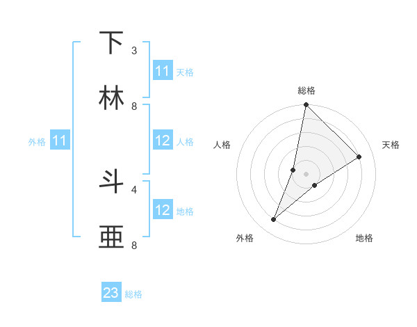 下林 斗亜さんを姓名の画数から五運を鑑定