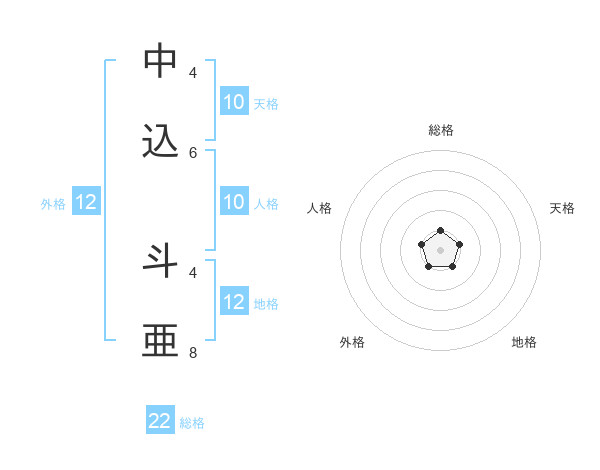 中込 斗亜さんを姓名の画数から五運を鑑定