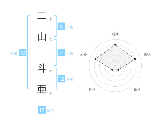 二山 斗亜さんの総格は17画の4点!