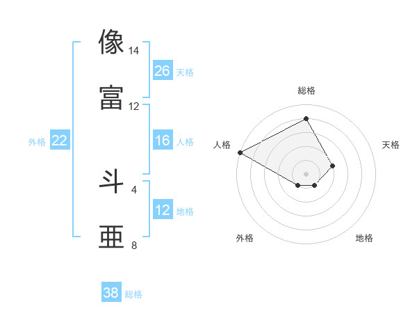 像富 斗亜さんの総格は38画の4点!