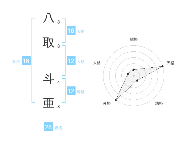 八取 斗亜さんの外格は16画の5点!