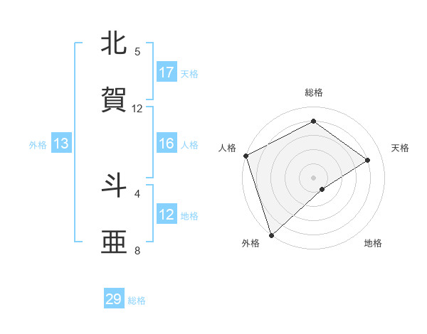 北賀 斗亜さんを姓名の画数から五運を鑑定