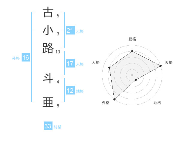 古小路 斗亜さんの天格は21画の5点!