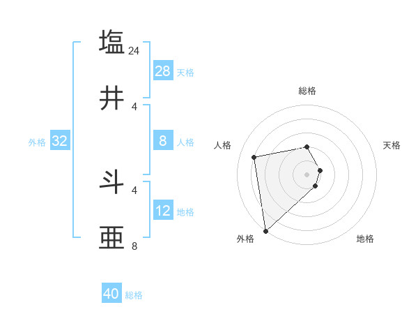 塩井 斗亜さんの総格は40画の2点!
