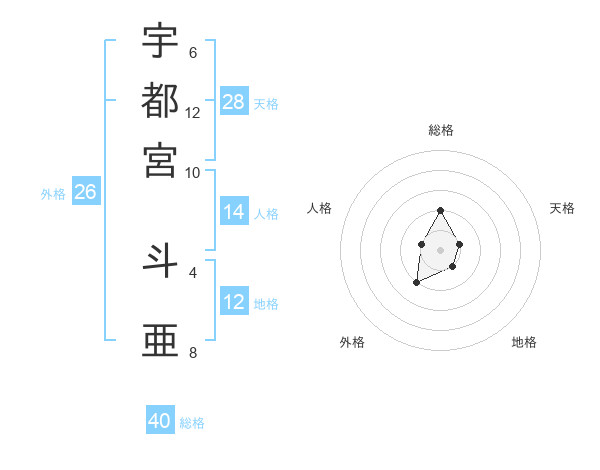 宇都宮 斗亜さんの総格は40画の2点!