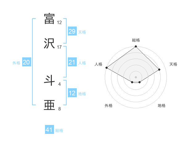 富沢 斗亜さんの天格は29画の4点!