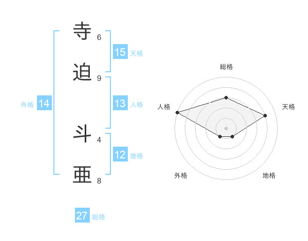 寺迫 斗亜さんの総格は27画の3点!