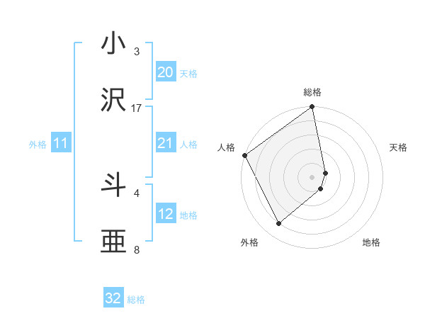 小沢 斗亜さんを姓名の画数から五運を鑑定