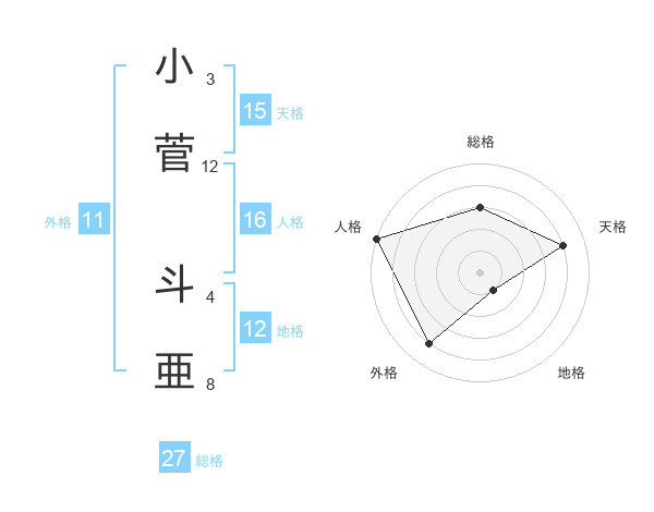 小菅 斗亜さんの総格は27画の3点!
