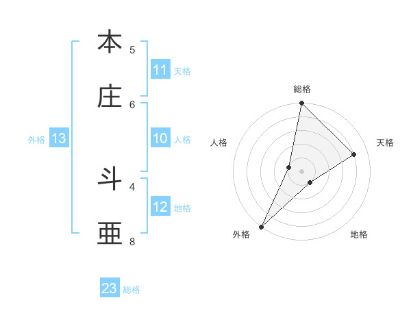 本庄 斗亜さんを姓名の画数から五運を鑑定