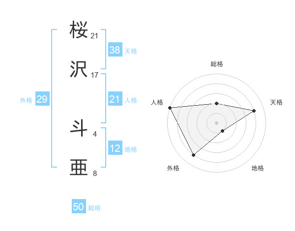 桜沢 斗亜さんを姓名の画数から五運を鑑定