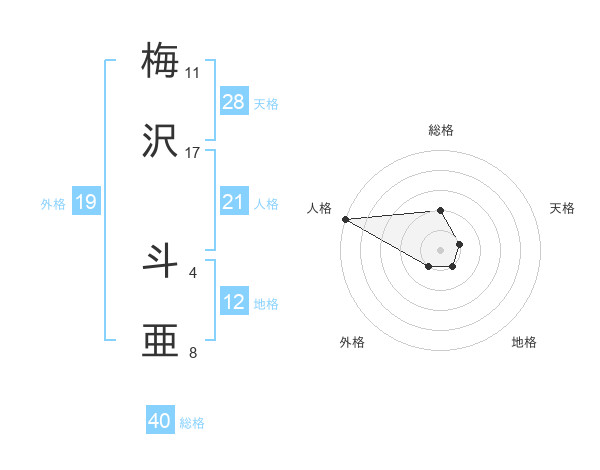 梅沢 斗亜さんの総格は40画の2点!