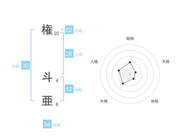 権 斗亜さんの総格は34画の2点