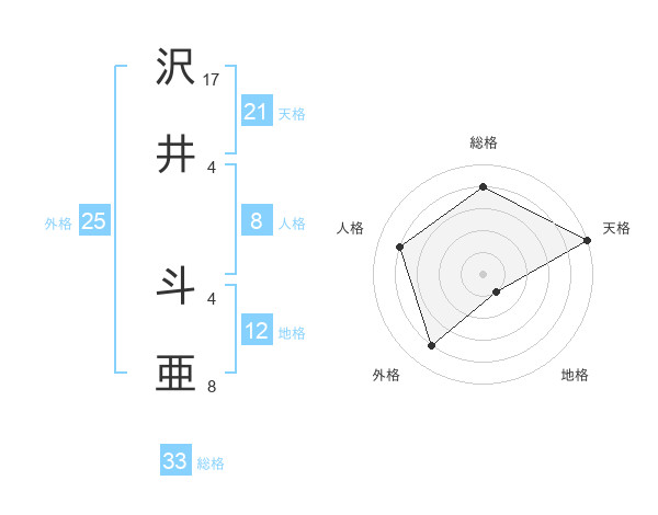 沢井 斗亜さんの天格は21画の5点!