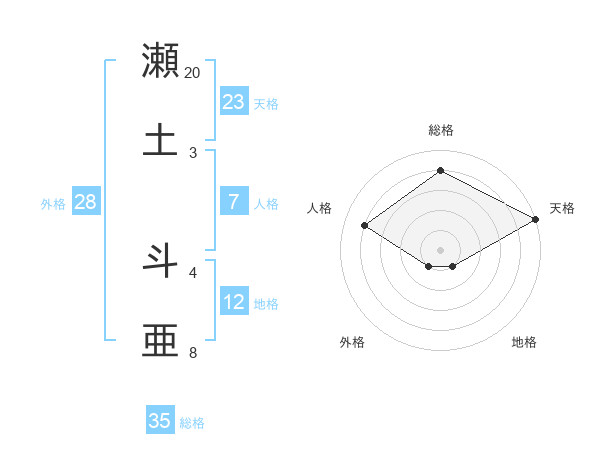 瀬土 斗亜さんの総格は35画の4点!