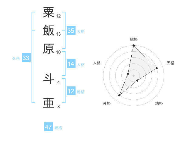 粟飯原 斗亜さんの総格は47画の5点!