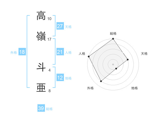 高嶺 斗亜さんの総格は39画の5点!