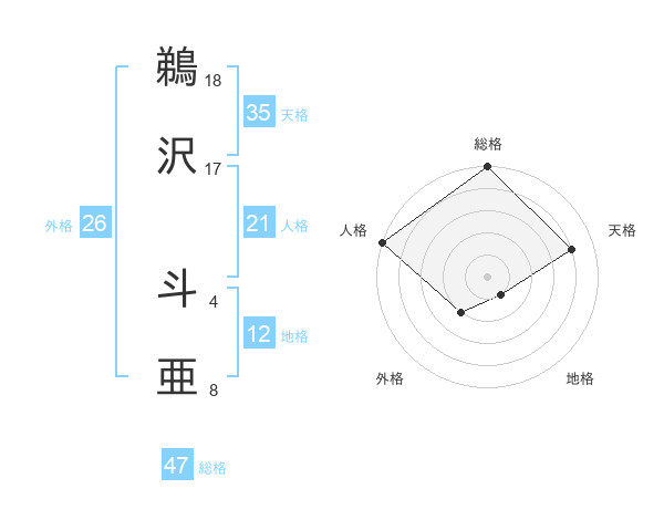 鵜沢 斗亜さんの総格は47画の5点!