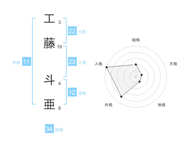 工藤 斗亜さんの総格は34画の2点!