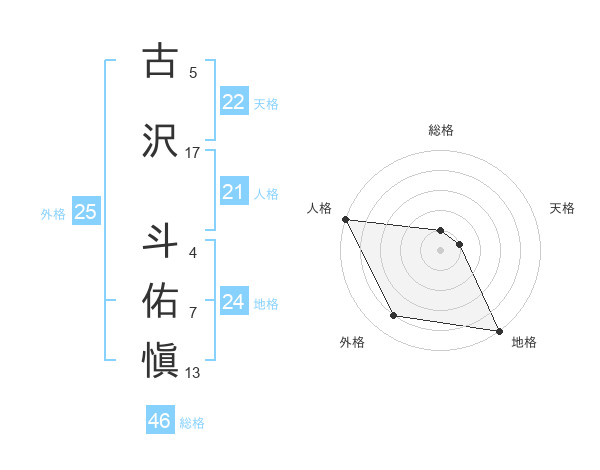 古沢 斗佑愼さんを姓名の画数から五運を鑑定