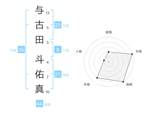 与古田 斗佑真さんの天格は23画の5点!