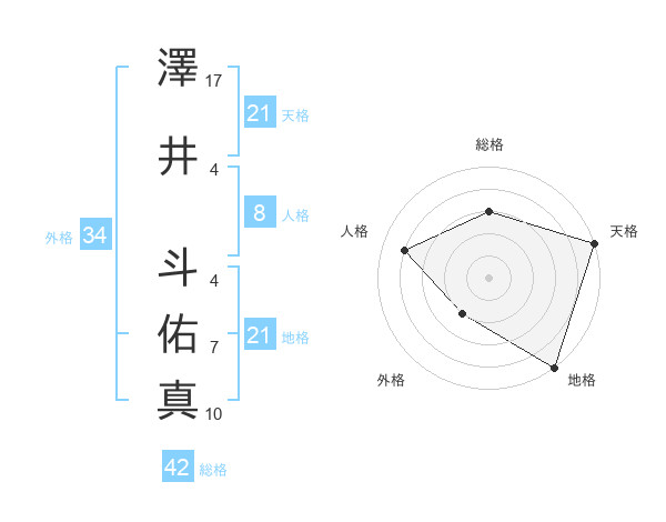 澤井 斗佑真さんの天格は21画の5点!