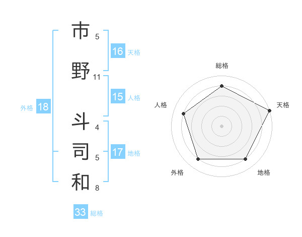 市野 斗司和さんを姓名の画数から五運を鑑定
