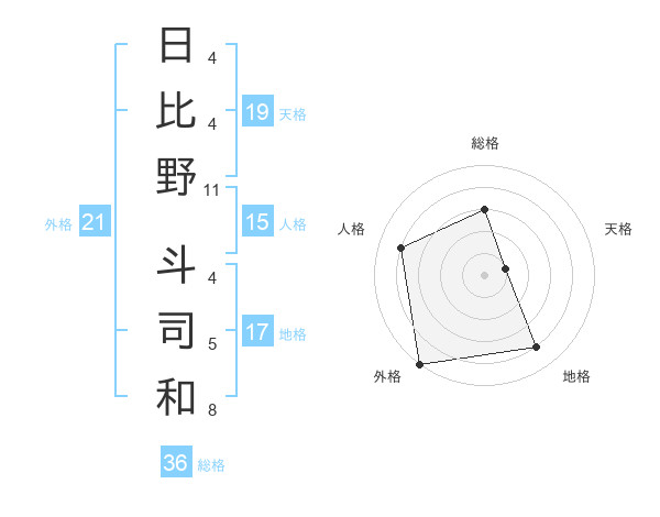 日比野 斗司和さんを姓名の画数から五運を鑑定