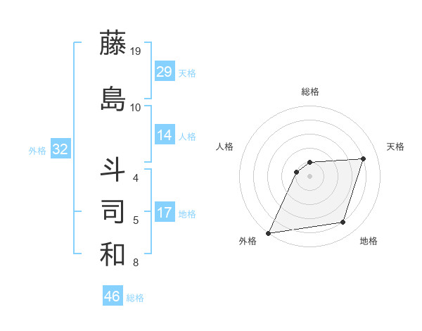 藤島 斗司和さんを姓名の画数から五運を鑑定
