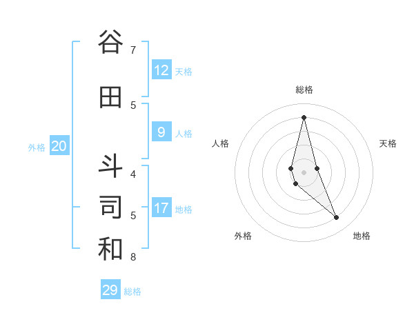谷田 斗司和さんを姓名の画数から五運を鑑定