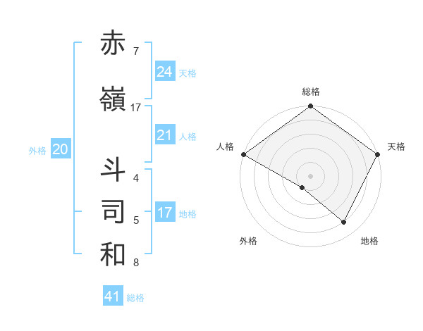 赤嶺 斗司和さんの総格は41画の5点!