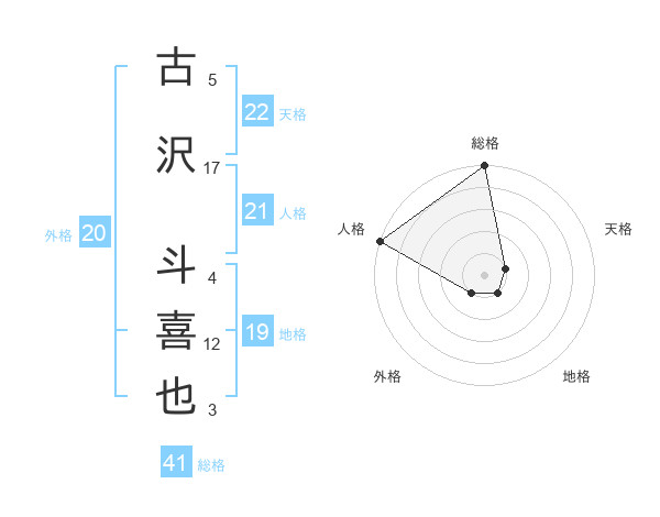 古沢 斗喜也さんを姓名の画数から五運を鑑定