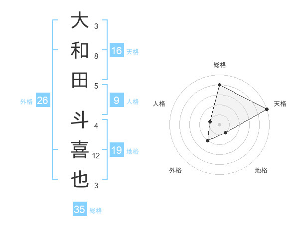 大和田 斗喜也さんの天格は16画の5点