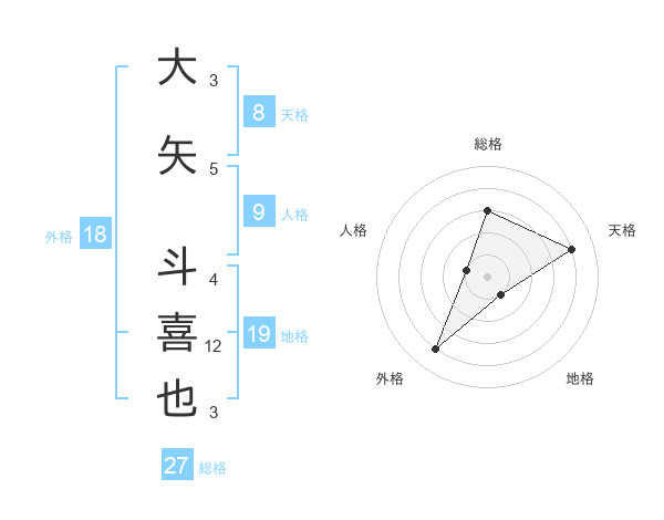 大矢 斗喜也さんを姓名の画数から五運を鑑定