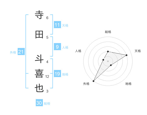 寺田 斗喜也さんを姓名の画数から五運を鑑定