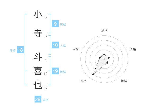 小寺 斗喜也さんを姓名の画数から五運を鑑定